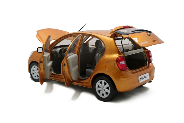Bagi para pengoleksi mobil diecast atau replika khususnya diecast mobil, mobil replika atau miniatur mobil maka jangan melewatkan Nissan New March Orange Die Cast dengan perbandingan atau skala 1:18. Berbeda dengan diecast pada umumnya, Nissan New March Orange Die Cast ini memiliki desain yang amat mirip dengan aslinya. Semua pintu dan kap mesin dapat dibuka. Stir kemudi dan Roda depan putar bersamaan Kursi bisa sliding dan di lipat.